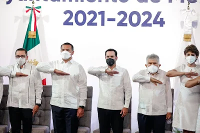 En una Sesión Solemne de Cabildo, celebrada en el auditorio “Silvio Zavala Vallado” del Centro Cultural “Olimpo” y transmitida por medios digitales, Renán Barrera atestiguó la rendición de compromiso constitucional de los regidores integrantes del Cabildo. Atestiguó el evento el gobernador del Estado, Mauricio Vila Dosal, Victor Hugo Lozano Poveda, Presidente de la Junta de Gobierno y Coordinación Política del Congreso del Estado y el Abog. Ricardo Ávila Heredia, Presidente del Tribunal Superior de Justicia y del Consejo de la Judicatura del Poder Judicial del Estado.