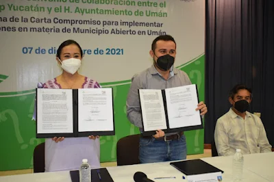 UMÁN, Yucatán.- Con el objetivo de coordinar acciones que promuevan la cultura de la transparencia entre servidores públicos y ciudadanos, el Ayuntamiento de Umán y el Instituto Estatal de Transparencia, Acceso a la Información Pública y Protección de Datos Personales (Inaip Yucatán) firmaron un convenio de colaboración, así como una carta compromiso para implementar acciones en materia de municipio abierto.